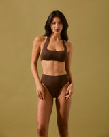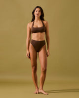 Model's wearing the matching Angela Top but make it your own style and pair it with any other black or solid color Bossa Swim bikini top.