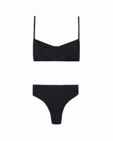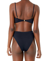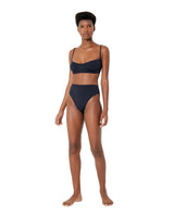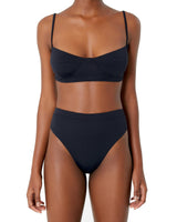 High-leg, high-waisted bottom with elastic waist band.