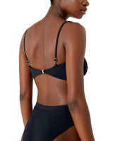 Bikini Set: Bandeau-style bikini top with defined cups, no under wire, adjustable straps and gold metal back closure.