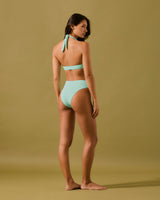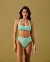 Model's wearing the matching Angela Bottom but make it your own style and pair it with any other black or solid color Bossa Swim bikini bottom.