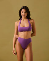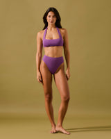 Model's wearing the matching Angela Bottom but make it your own style and pair it with any other black or solid color Bossa Swim bikini bottom.